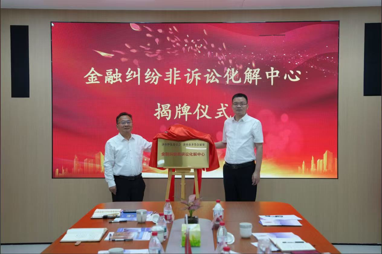 为深入贯彻落实党中央全面依法治国会议精神及省市政法委有关纠纷多元化解文件精神,把非诉讼纠纷解决机制挺在前面,发挥公证预防性司法制度优势以及仲裁和公证的类司法职能,5月16日,济南市司法局、济南仲裁委员会、济南市历下区人民法院、济南市齐鲁公证处召开金融纠纷非诉讼化解座谈会。“济南仲裁委、济南市齐鲁公证处金融纠纷非诉讼化解中心”同时揭牌成立。济南仲裁委员会办公室党组书记、主任贾玉东,济南市司法局党委委员、副局长吴冠华,济南市历下区人民法院党组成员、副院长曹慧,齐鲁公证处党支部书记、主任冯培明及有关负责同志参加座谈。